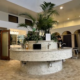 My husband and I have been coming here for years. It is a terrific place inside the Brea Mall. The lounge area outside the actual spa is very welcoming and a place to either relax before the spa treatment or relax before leaving the tranquil spa. The spa even provide a lunch service to be enjoyed at the spa. So thoughtful and accommodating! Inside the spa is a jacuzzi, sauna and several showers. Also, there are three counters with mirrors that are staffed with brushes, hair dryers, hair bands, razors, q-tips, tampons, shaving cream, hair products and etc.. The therapists are very professional, kind and attentive. This is a great spa to go to before or after hanging out at the mall.